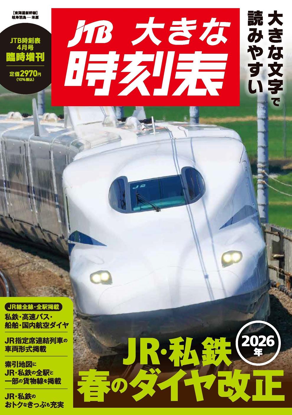 ☆文字が大きくてみやすい! 創刊101年の歴史を持つ「JTB時刻表」の拡大版。3/14(土)のJRグループ、私鉄各社のダイヤ改正を反映した「JTB時刻表」2026年4月号を拡大し、みやすくした臨時増刊号です。一部を除き、「JTB時刻表」の内容をそのまま掲載しています。旅の計画にぜひご利用ください。