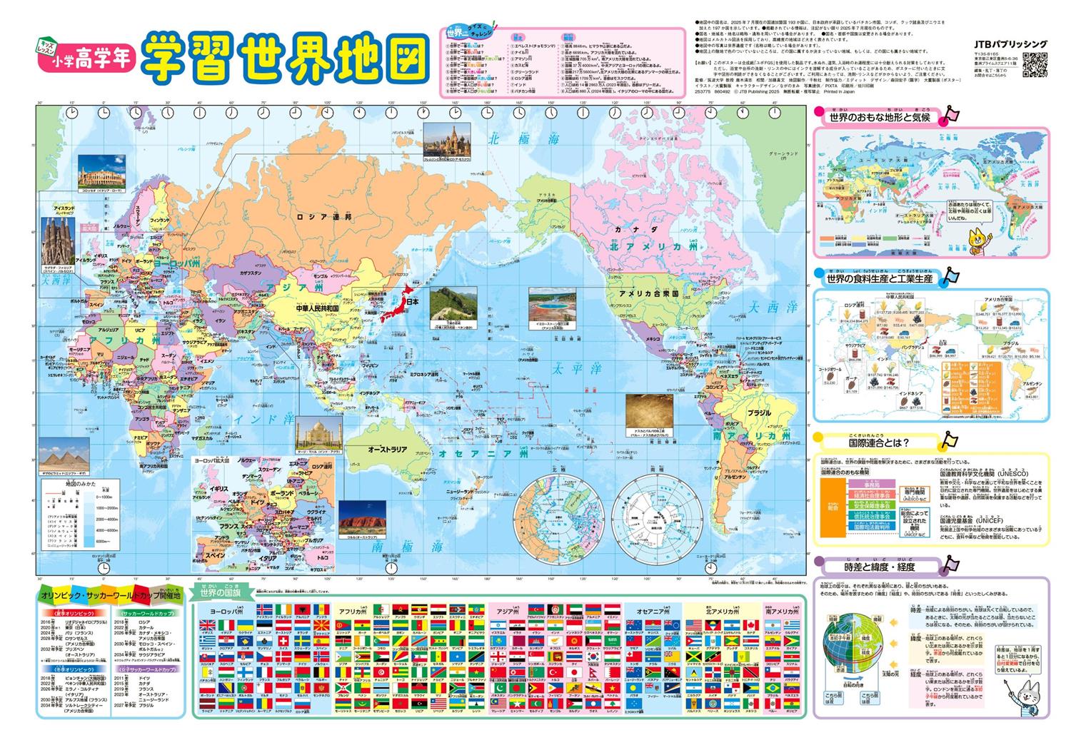 学習指導要領に対応した、高学年年向けの学習世界地図。